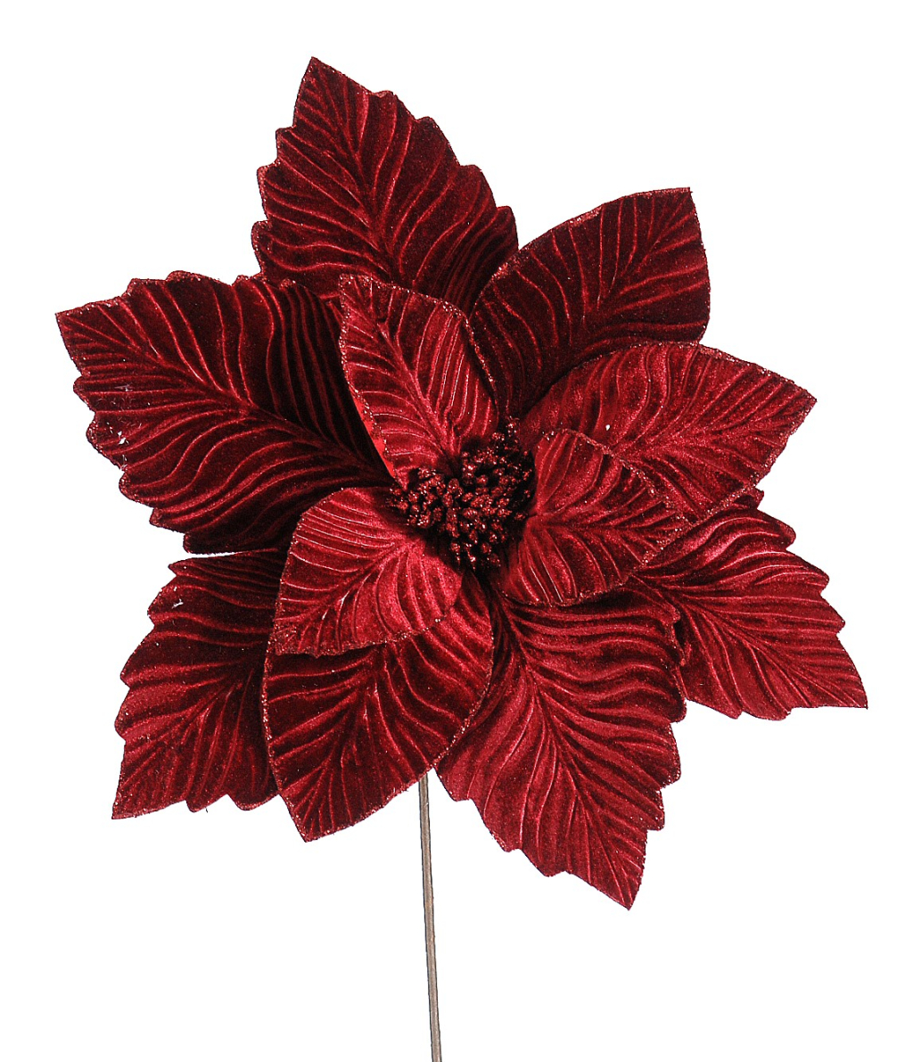 Bordó piros bársonyhatású virágdísz mikulásvirág