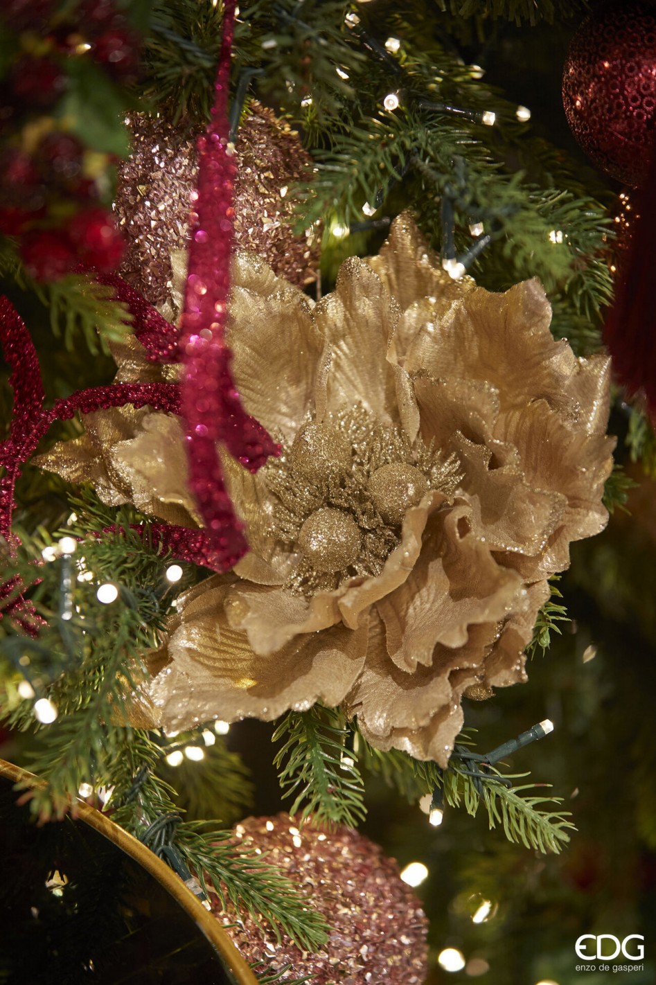 Csíptethető virág, magnólia, arany glitteres, 28 cm