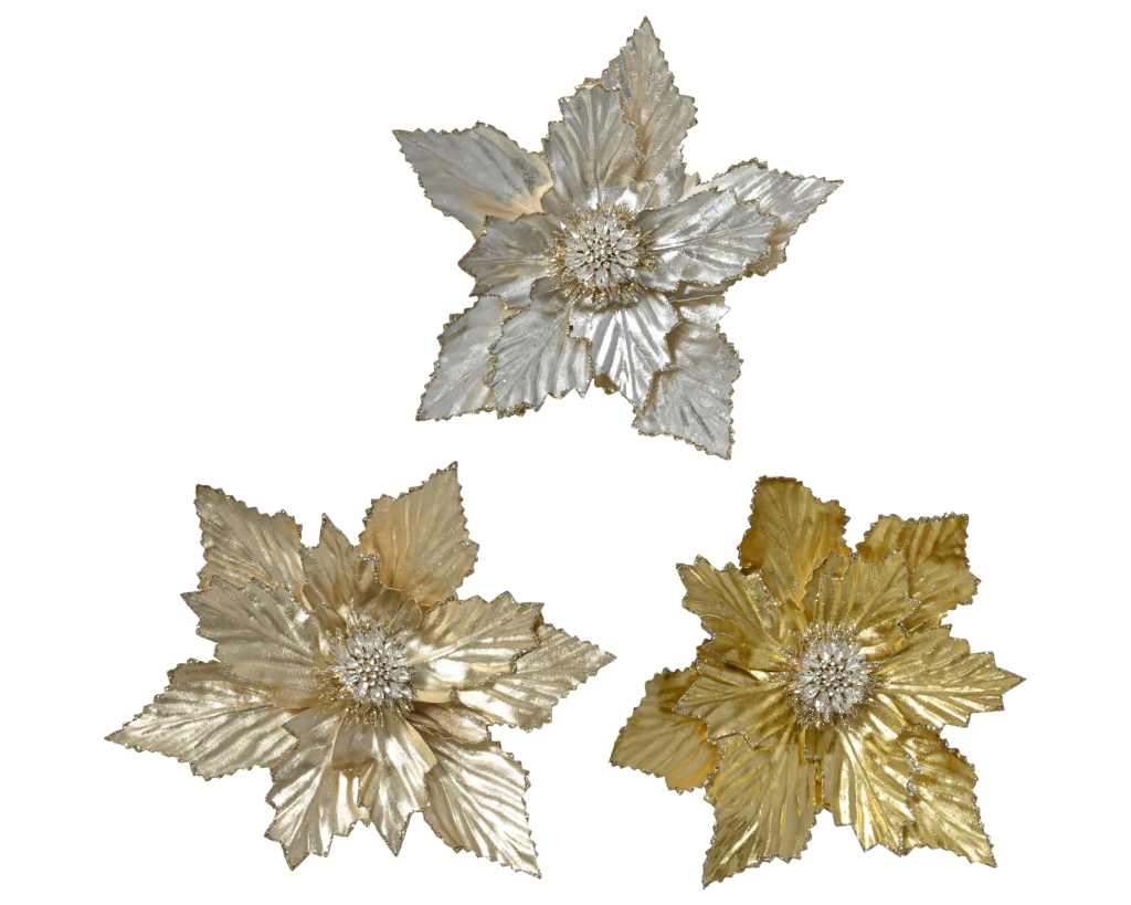 Csíptetős virágdísz arany mikulásvirág, metálfényű