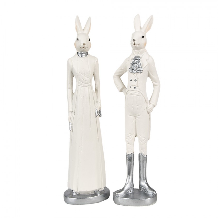 Fehér/ezüst elegáns nyúl, húsvéti nyuszi, nyuszipár, 20 cm