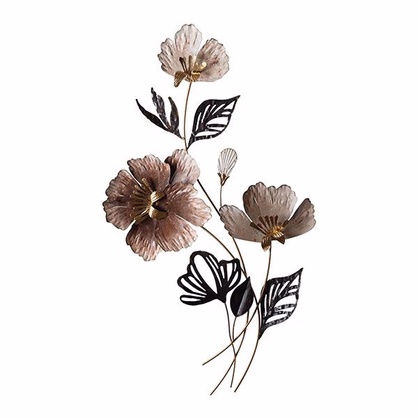 Fém virágos falikép, térbeli, 3D virágos fali dísz, barna, 50x87 cm