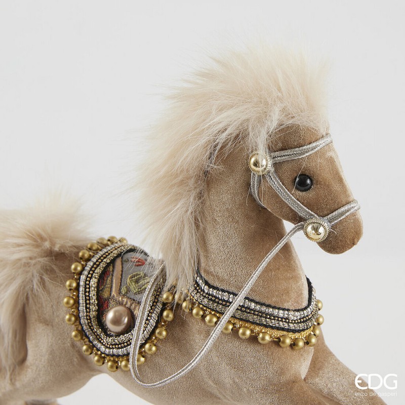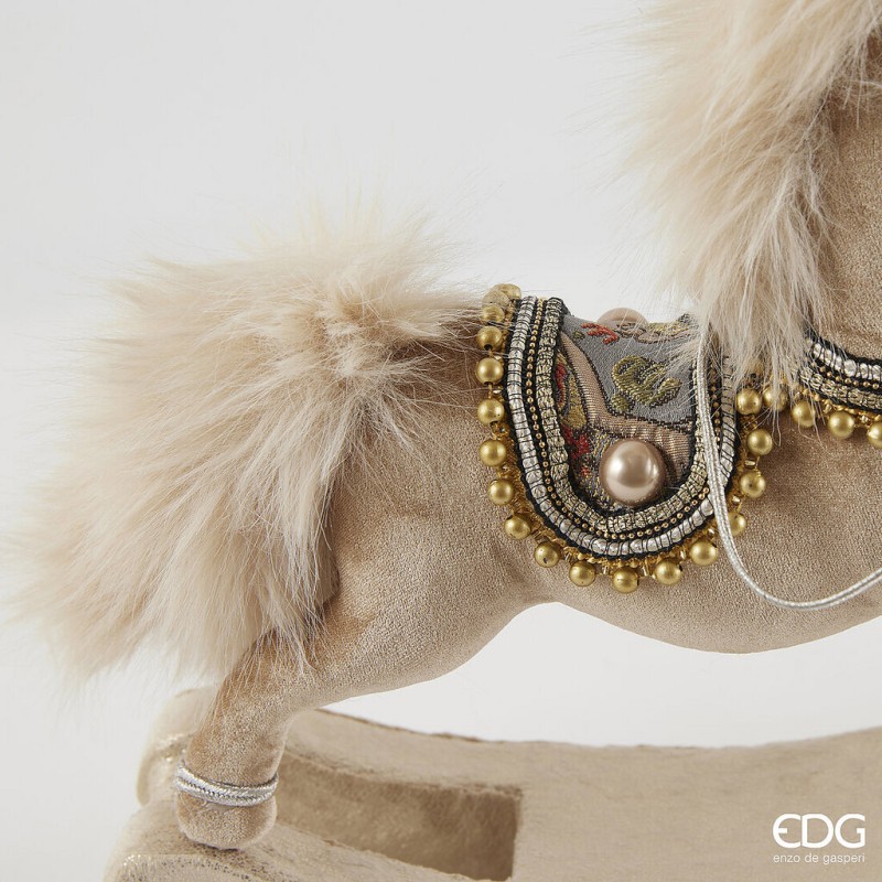 Hintaló figura, hintalovas dísz, elegáns hintalovacska, plüss bevonatú, gyöngyös (több méret)