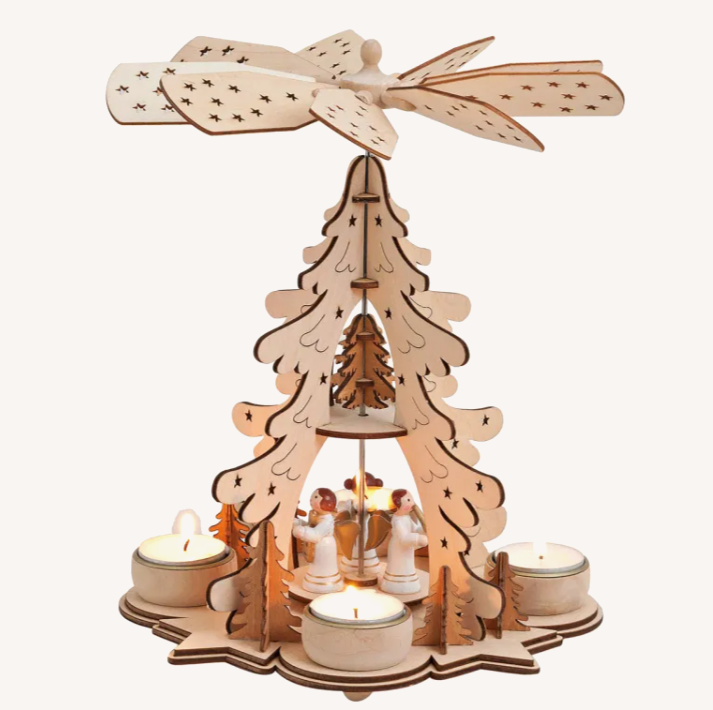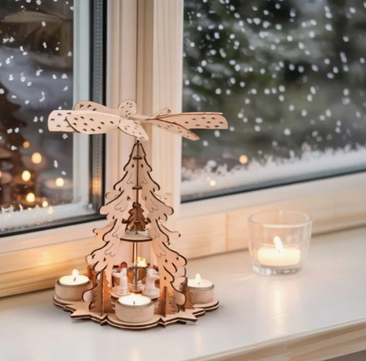 Hő hatására forgó mécsestartó, fa, adventi koszorú