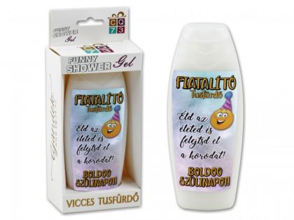 "Fiatalító" tusfürdő születésnapra, "Éld az életed és felejtsd el a korodat!", vicces tusfürdő