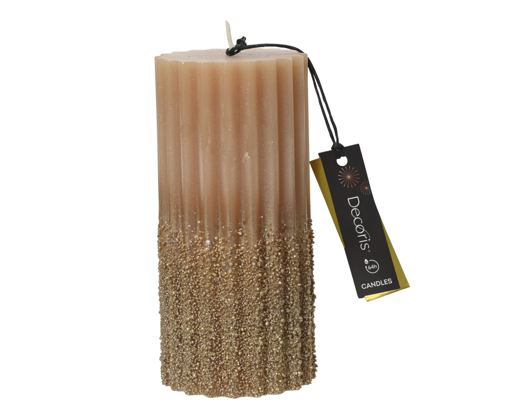 Bronz gyertya, barna glitteres tömbgyertya, karácsonyi gyertya, elegáns gyertya