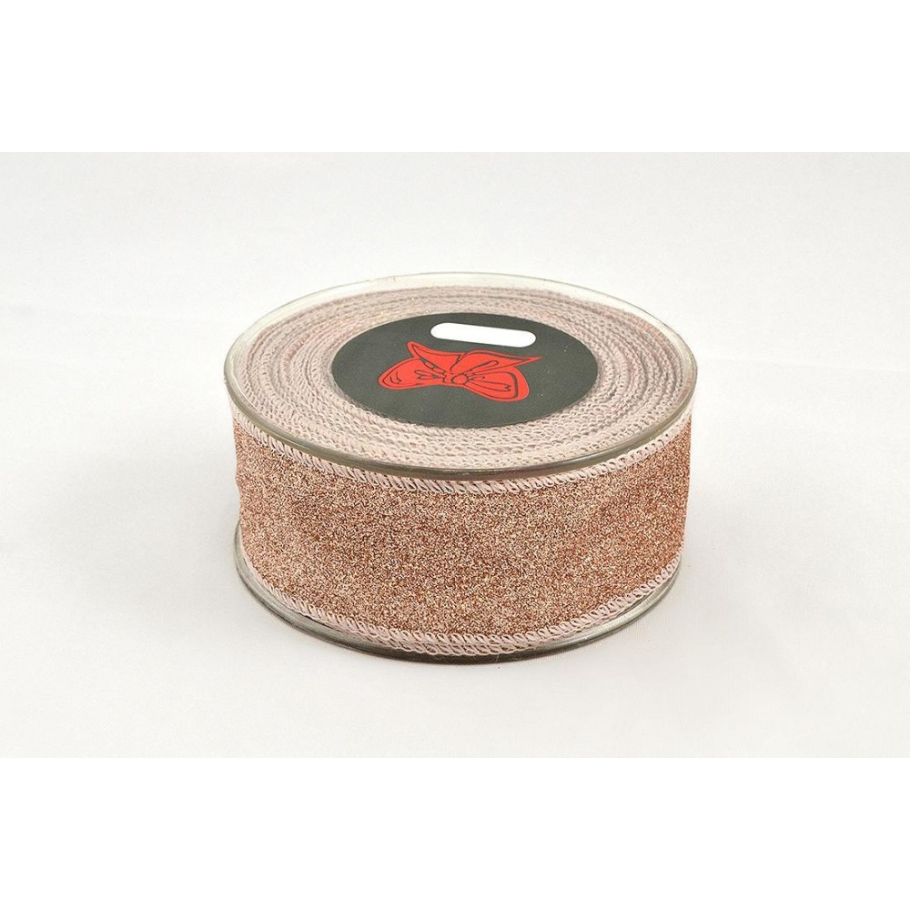 Karácsonyi szalag, masni, szalagtekercs díszcsomagoláshoz, (6,7x900 cm), rózsaarany, rosegold, rosé, glitteres