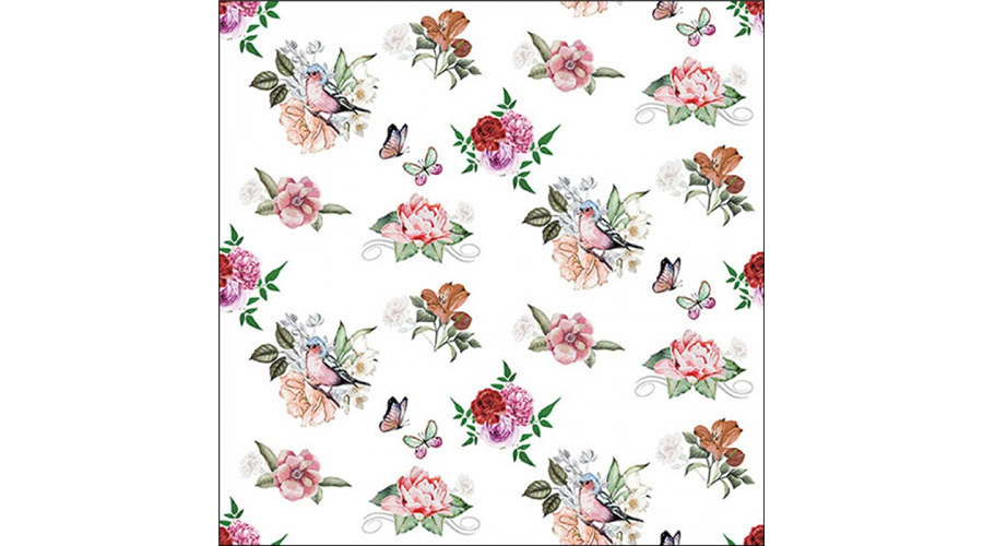 Papírszalvéta, rózsaszín virágos szalvéta, 33x33 cm, Charlotte white