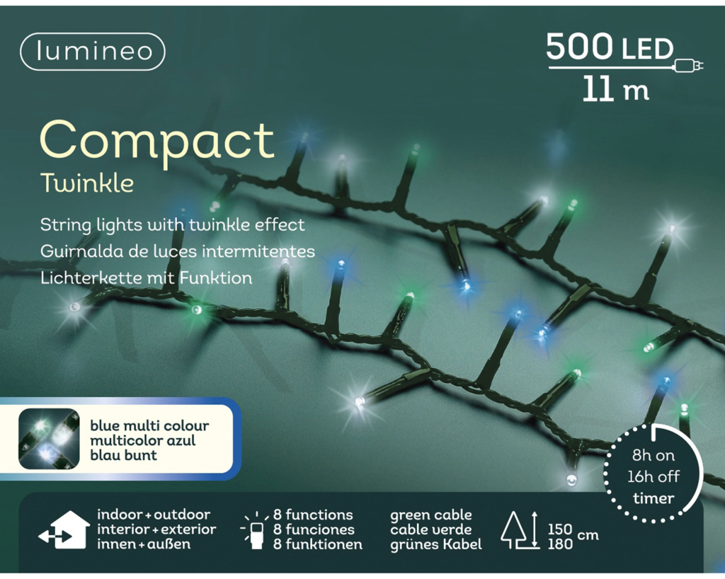 Méret: Hossz: 11 m + 5 m kábel (150-180 centis fenyőfához ideális választás), 500 db LED égő