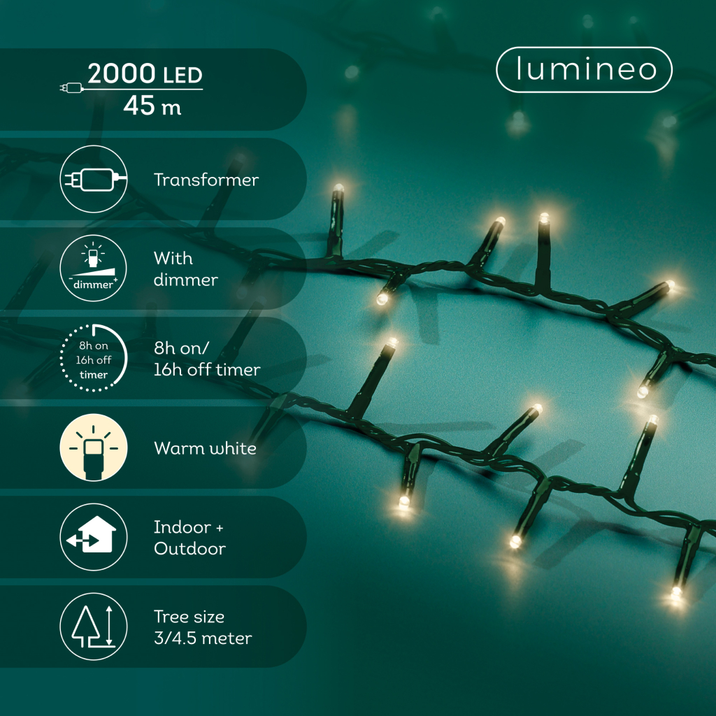 Méret: Hossz: 16 m + 5 m kábel (300-450 centis fenyőfához ideális választás), 2000 db LED égő