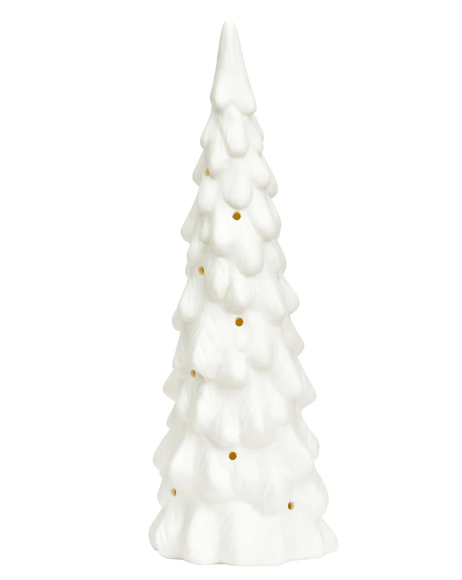 LED világító porcelán fenyőfa hangulatvilágítás (25 cm), krémfehér