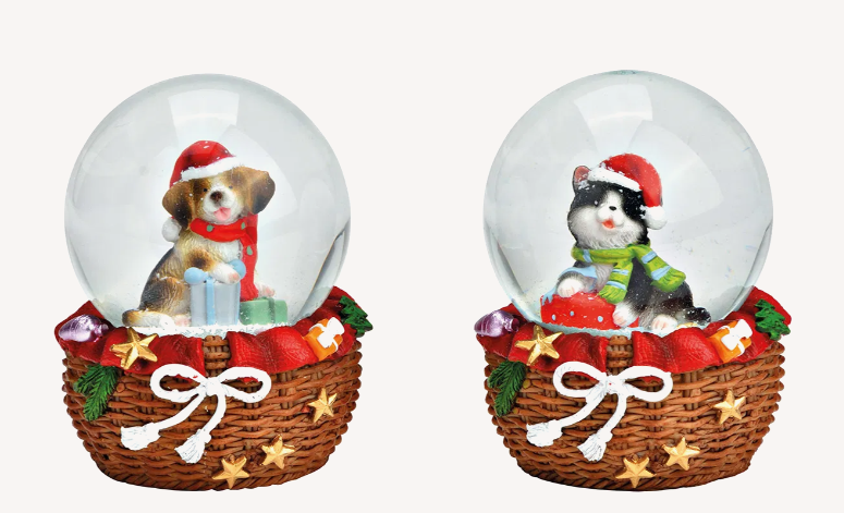 Mikulássapkás kutya/cica hógömb, 9 cm