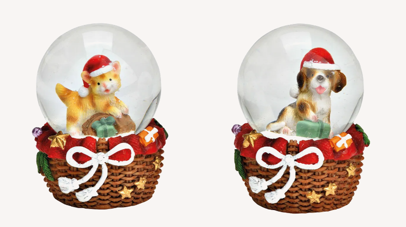 Mikulássapkás kutya/cica hógömb 6 cm