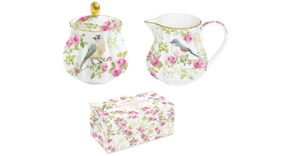 Porcelán cukortartó, tejkiöntő szett díszdobozban, Spring Time