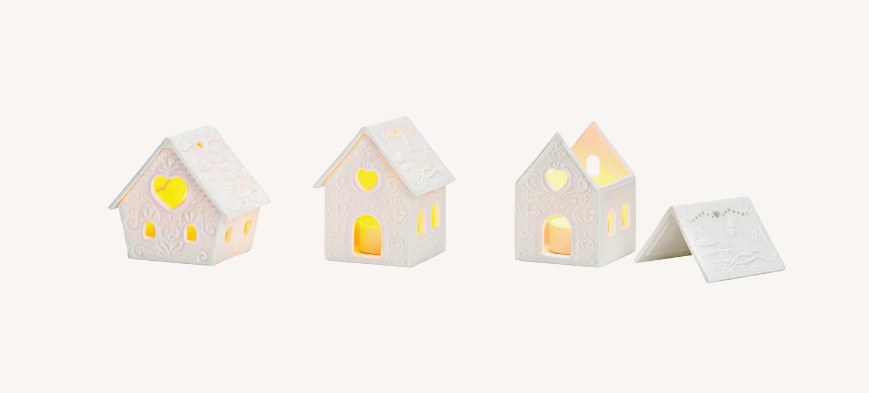Porcelán mézeskalács-házikó formájú mécsestartó, krémfehér