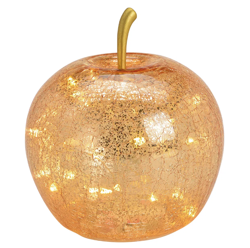 Üveg alma LED világítással, hangulatvilágítás (több méret) metálfényű arany