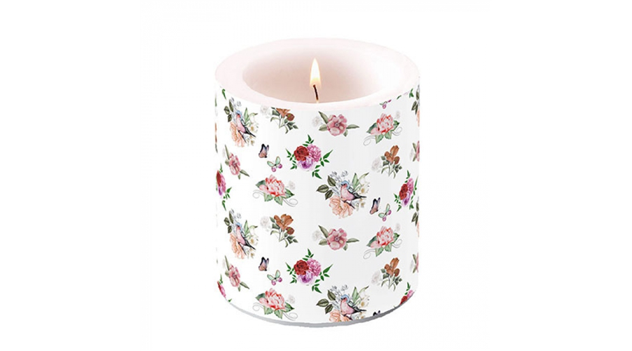 Virágmintás átvilágítós gyertya, Charlotte white