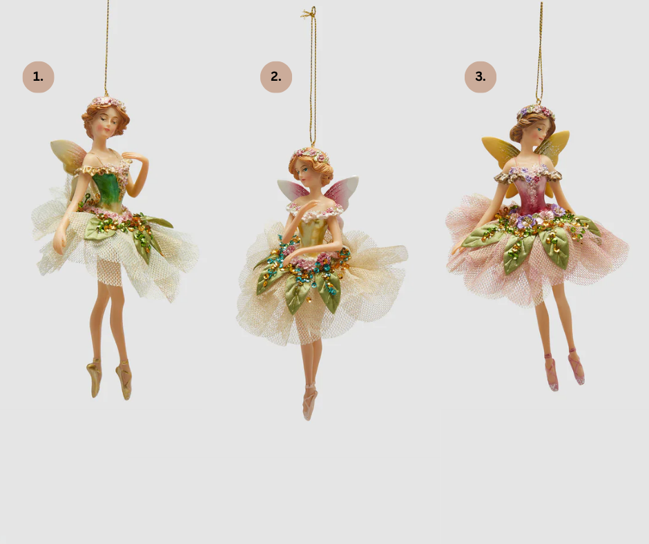 Zöld, rózsaszín tündér figura, virágtündér, balerina, akasztható (16 cm, többféle)